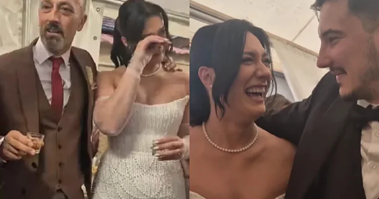 On je zamolio prisutne da podignu čaše i nazdrave novom koraku u životu njegove kćerke i njenog supruga. Dok je držao govor, otac je zaplakao, kao i prisutni gosti i njegova kćerka.