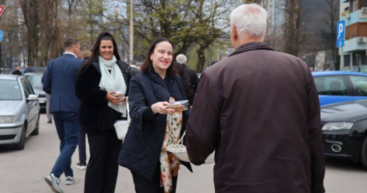 Načelnica Općine Novo Sarajevo Benjamina Karić jutros je, nakon bajram-namaza, u haremu džamije Grbavica II podijelila radost Bajrama sa sugrađankama, počastivši ih tradicionalnim bajramskim baklavama.