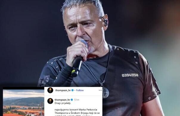 “Dragi prijatelji, najavljujemo koncert Marka Perkovića Thompsona u Širokom Brijegu koji će se održati 13. veljače 2026. godine u športskoj dvorani Pecara. Informacije o prodaji ulaznica bit će objavljene uskoro”, napisao je na Thompsonovim društvenim mrežama.