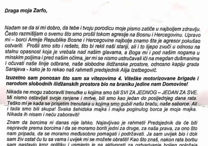 Na adresu našeg portala stiglo je pismo adresirano na Zarfu Mehmedspahić, koje je dobila u ime kandidata SDA za načelnika Ilidže Fikreta Prevljaka a koje nam je poslao njen sin, Rifet...