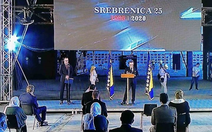 Predsjedavajući i član Predsjedništva Bosne i Hercegovine Šefik Džaferović i Željko Komšić prisustvuju današnjem obilježavanju 25 godišnjice genocida nad Bošnjacima "Sigurne zone...