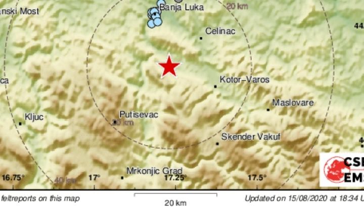Večeras oko 2026 časova časova zemljotres je pogodio područje Banjaluke Evropski seizmološki centar objavio je da je magnituda zemljotresa bila 15, a epicentar 13 kilometara južno od...