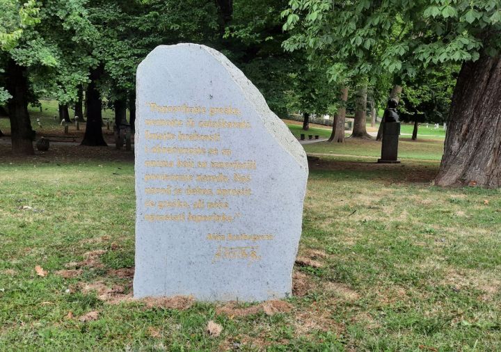 Piše: Patria Ako ste nedavno šetali centrom glavnog grada BiH i prolazili Velikim parkom morali ste vidjeti ploču s citatom prvog predsjednika Predsjedništva Bosne i Hercegovine Alije...