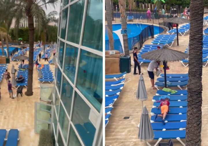 Brojni turisti snimljeni su kako jure prema ležaljkama u Benidormu u Španiji, ali jedan od njih postao je viralan zbog taktike kojom je pokušao osigurati najbolju poziciju uz bazen Haotična...