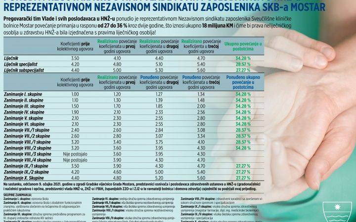 Vlada Hercegovačko-neretvanske županije (HNŽ) objavila je u utorak ponudu Pregovaračkog tima Vlade i svih poslodavaca u HNŽ-u reprezentativnom Nezavisnom sindikatu zaposlenika...