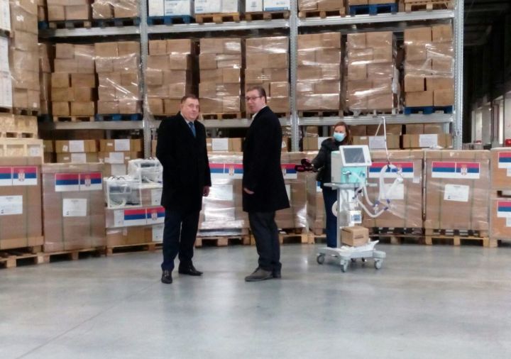 Aleksandar Vučić, predsjednik Srbije, uručio je Miloradu Dodiku, predsjedavajućem Predsjedništva Bosne i Hercegovine, novu donaciju za borbu protiv koronavirusa Vučić je Dodiku dao 30...