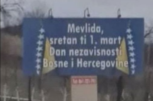 “Mevlida, sretan ti 1 mart, Dan nezavisnosti Bosne i Hercegovine”, poruka je na bilbordu u Doboj Istoku Čestitka je upćena Mevlidi Dervišefendić, direktorici OŠ “Petar Kočić” kod...