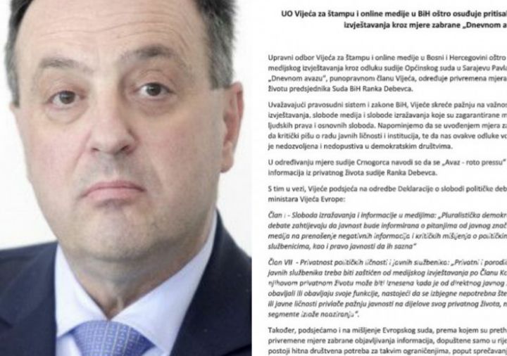 Nakon što je sudija Općinskog suda u Sarajevu Pavle Crnogorac donio privremenu mjeru zabrane "Dnevnom avazu" da piše o privatnom životu predsjednika Suda BiH Ranka Debevca, oglasio se Upravni...