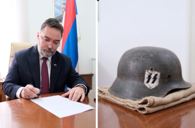 Zamjenik predsjedavajuće Vijeća ministara i član Predsjedništva SNSD-a Staša Košarac poslao je danas šljem nacističke vojske visokom predstavniku Christianu Schmidtu Uz šljem, Košarac...