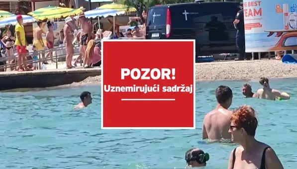 Mi smo na plažu došli oko 10:30 sati Hitna je došla za pet minuta Gospođa je ležala na boku Oživljavali su je gotovo sat vremena i nisu uspjeli Pokrili su je nečim plavim, ali ne cijelu...
