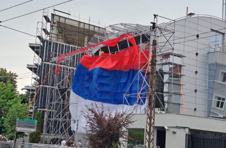 Ispred TV Pink danas promjene - ali zastave Ona koja je postavljena jučer mijenja se novom Kako javlja novinarka portala N1, ispred zgrade televizije je postavljena i skela Ogromna srpska...