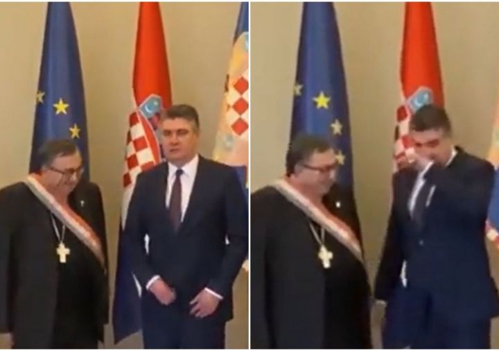 Milanović prilikom odlikovanja Puljića jednom rukom zakopčavao šlic, drugom brisao nos