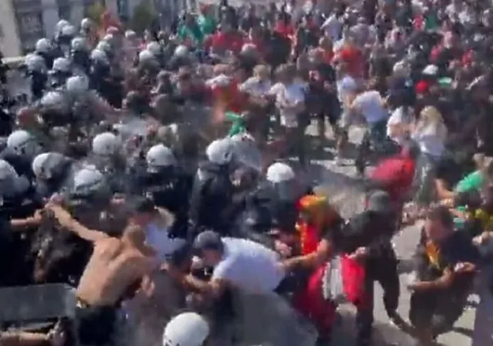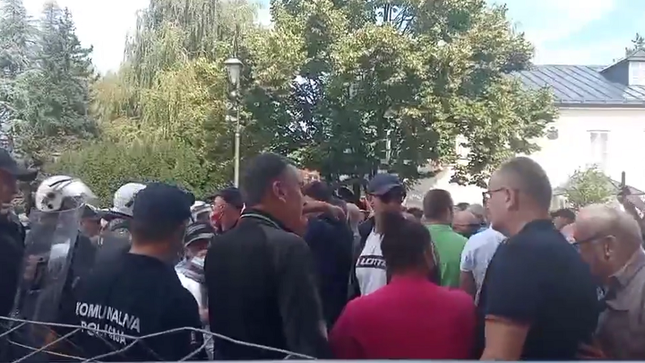 Grupa građana uklonila je zaštitnu ogradu postavljenu na Dvorskom trgu, ispred Cetinjskog manastira koju je policija postavila kao mjeru uoči sutrašnjeg ustoličenja mitropolita Joanikija...