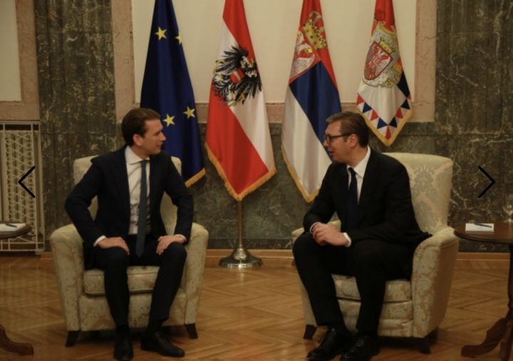 Austrijski kancelar Sebastijan Kurz i srbijanski predsjednik Aleksandar Vučić sastali su se danas u Beogradu Vučić mu je uručio Orden Republike Srbije na lenti - Hvala vam na...