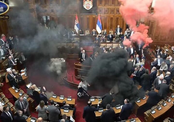 Potpuni haos dešava se u ovim trenucima na prvom zasjedanju Skupštine Srbije poslije više od tri mjeseca U jednom trenutku došlo je do sukoba poslanika u Skupštini Čak su se gađali i...