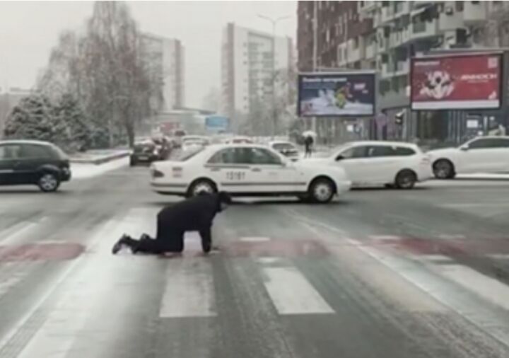 Nesvakidašnja situacija je snimljena u Skoplju, a kako se može vidjeti čovjek se snašao kako je mogao Naime, kako djele tamošnji mediji, snijeg je izazvao neobičnu situaciju Jedan...