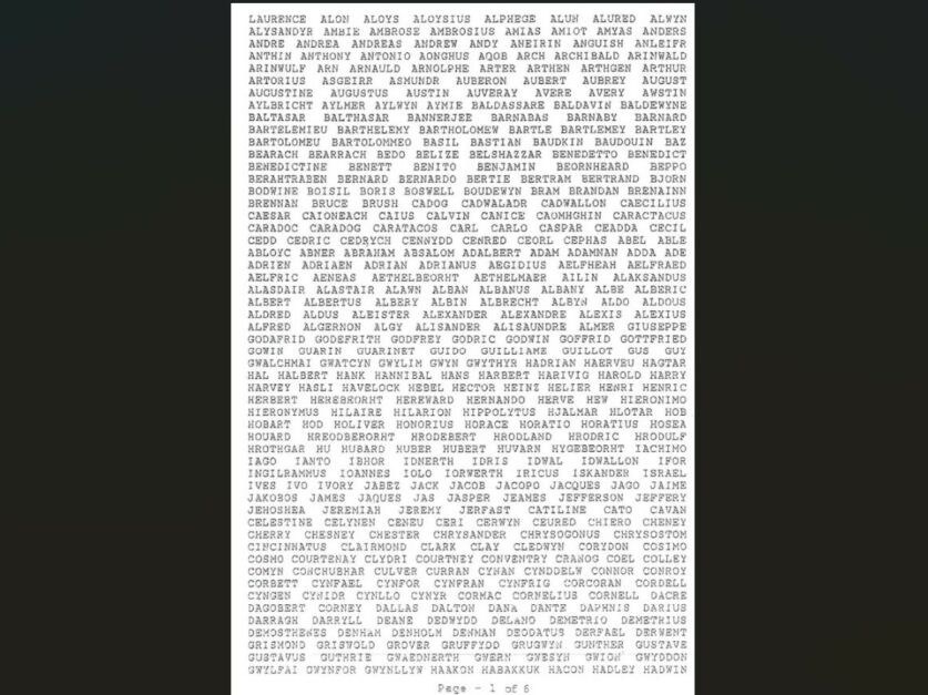 Laurence Watkins s Novog Zelanda u martu 1990. godine odlučio je promijeniti svoje ime kako bi uključio više od 2.000 srednjih imena. Njegova odluka rezultirala je upisom u Guinnessovu knjigu rekorda za najduže lično ime, koje se sastoji od ukupno 2.253 jedinstvene riječi.